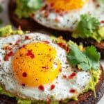 This Avocado Egg Toast on whole grain bread is a quick, nutritious breakfast or snack option featuring creamy mashed avocado, perfectly cooked eggs, and optional garnishes for extra flavor. Toasted bread provides a satisfying crunch, while the lemon juice in the avocado adds a refreshing zest.