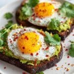 This Avocado Egg Toast on whole grain bread is a quick, nutritious breakfast or snack option featuring creamy mashed avocado, perfectly cooked eggs, and optional garnishes for extra flavor. Toasted bread provides a satisfying crunch, while the lemon juice in the avocado adds a refreshing zest.