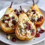 These Baked Pears with Brie, Walnuts, and Cranberries offer a warm and delicious combination of sweet and savory flavors. Perfect as an elegant appetizer or a light dessert, the pears are tender and infused with cinnamon, then topped with creamy feta, tart dried cranberries, crunchy walnuts, and a drizzle of honey. Fresh thyme adds a subtle aromatic finish to bring all the flavors together beautifully.
