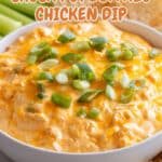 - Garnish and Serve: Top the dip with optional chopped green onions, crumbled blue cheese, or a sprinkle of smoked paprika if desired. Serve the dip warm with chips, celery sticks, or slices of bread.