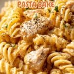 This Cajun Cream Cheese Chicken Pasta Bake features tender chicken breasts cooked in a creamy, flavorful Cajun sauce with cream cheese, garlic, and Parmesan, combined with perfectly cooked penne pasta, then baked to golden perfection. It's a comforting and indulgent dish with a delightful Cajun kick that's perfect for a hearty dinner.