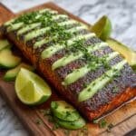 This Cajun Salmon Avocado Lime recipe features perfectly seared salmon fillets seasoned with a bold Cajun spice blend, finished in the oven for tender, flaky results. Topped with a creamy, tangy avocado lime sauce made with Greek yogurt, fresh lime juice, cilantro, and a hint of cayenne for a subtle kick, this dish is a vibrant and healthy meal perfect for any occasion.