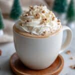 Enjoy a delicious homemade Caramel Brûlée Latte that mimics the famous Starbucks version, featuring rich espresso, creamy caramel-flavored milk, topped with whipped cream and crunchy toffee bits for the perfect sweet treat.
