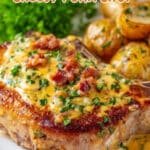 This Cheesy Pork Chop with Potatoes recipe delivers tender, juicy pork chops nestled on a bed of creamy, garlicky potatoes smothered in a rich homemade gravy. Perfectly seared pork chops are baked alongside potatoes in a flavorful thyme-infused sauce, making for a comforting and easy one-dish dinner.