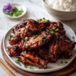 Chinese BBQ Pork is a flavorful dish made with marinated cubed pork shoulder baked to perfection, featuring a sweet and savory glaze with a hint of spice, finished with a crispy charred crust and garnished with fresh green onions.