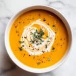 A creamy and comforting pumpkin soup made with fresh pumpkin, aromatic onions and garlic, cooked in vegetable broth and finished with a touch of heavy cream. Perfect for a cozy autumn meal.