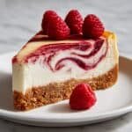 This creamy raspberry cheesecake recipe is an easy and delicious dessert featuring a buttery graham cracker crust, smooth cream cheese filling, and a vibrant raspberry swirl. Baked in a water bath for a perfectly set texture, this cheesecake makes for a delightful treat perfect for any occasion.