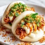These Dynamite Chicken Buns are soft, fluffy steamed buns filled with a spicy, flavorful chicken mixture tossed in dynamite sauce. Perfect as a snack or appetizer, they combine a tender dough with zesty, creamy filling accented by fresh herbs.