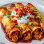 These Easy Baked Chicken Taquitos are a delicious and crispy Mexican-inspired snack or appetizer made with shredded rotisserie chicken, creamy cheeses, and salsa verde, all rolled in corn tortillas and baked to golden perfection.