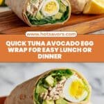 A quick and nutritious Tuna Avocado Egg Wrap combining protein-rich tuna and eggs with creamy avocado and fresh greens, all wrapped in a wholesome whole wheat or low-carb tortilla. Perfect for a healthy lunch or on-the-go meal.