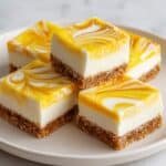 Lemon Marbled Cheesecake Bars are a bright and tangy dessert featuring a buttery graham cracker crust, smooth cheesecake filling with fresh lemon zest and juice, and a beautiful marbled lemon swirl. Topped with fresh berries, these bars are perfect for spring and summer gatherings that delight the senses with a refreshing citrus flavor and creamy texture.