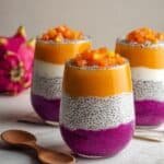 This vibrant Mango and Dragon Fruit Chia Pudding is a refreshing and nutritious dessert or snack that combines creamy coconut milk, sweet mango coulis, and exotic dragon fruit pureed with chia seeds. Naturally sweetened with maple syrup and layered with vanilla coconut yoghurt, it offers a creamy texture packed with antioxidants and fiber, perfect for a healthy treat any time of the day.