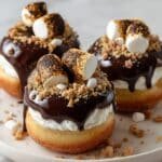 Indulge in the delightful treat of Marshmallow Cream Filled S’mores Donuts, featuring a soft, fluffy fried dough filled with a creamy marshmallow center, topped with rich chocolate ganache and crunchy graham cracker crumbs. Perfect for dessert or a special snack, these donuts bring the nostalgic flavors of s’mores into a fun, handheld form.
