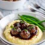 A hearty and comforting dish featuring tender meatballs simmered in a creamy mushroom stew served over smooth mashed potatoes. This recipe blends rich flavors from ground beef, savory mushrooms, and a luscious cream sauce, paired perfectly with buttery, fluffy mashed potatoes—ideal for a satisfying dinner.