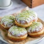 Delight in these homemade Matcha Cream-Filled Donuts featuring fluffy, golden fried donuts filled with a smooth, sweet matcha cream. Perfect as a unique dessert or special snack, topped with powdered sugar and optional white chocolate drizzle for extra indulgence.
