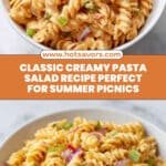 Ingredient Note: Exact measurements for Pink Cadillac Pasta Salad Recipe are listed in the printable recipe card at the bottom of the post.