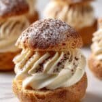 Indulge in these Pumpkin Tiramisu Cream Puffs, a delightful twist on classic French choux pastry filled with a light pumpkin mascarpone mousse and infused with espresso and Marsala wine flavors. Perfect for fall gatherings or a festive dessert treat.
