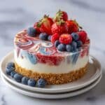 This vibrant 4th of July Swirl Pie features festive red, white, and blue layers that are perfect for any patriotic celebration. A crisp graham cracker crust is filled with a light, creamy cream cheese mixture, beautifully swirled with fresh strawberry and blueberry purees for a visually stunning and delicious dessert.