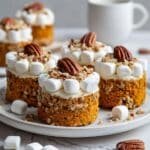 Deliciously sweet and tender roasted sweet potato bites topped with toasted marshmallows and crunchy pecans, perfect as an appetizer or sweet side dish.