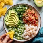 This refreshing shrimp ceviche recipe features tender shrimp marinated in fresh lime juice combined with crisp tomatoes, cucumber, red onion, jalapeno, and cilantro. Finished with creamy avocado, it makes a perfect light appetizer or snack that’s bright, zesty, and easy to prepare.