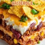You can freeze this casserole before baking: assemble in a freezer-safe dish, cover tightly with foil and plastic wrap, and freeze for up to 2 months. When ready, thaw overnight in the fridge and bake as directed. Fresh Fritos added after baking restore the signature crunch.